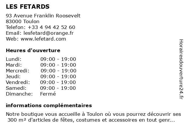 | Lundi | 09:00-19:00 |