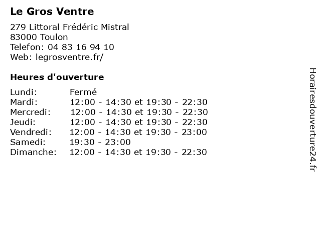 | Dimanche | 12:00-14:30 et 19:30-22:30 |