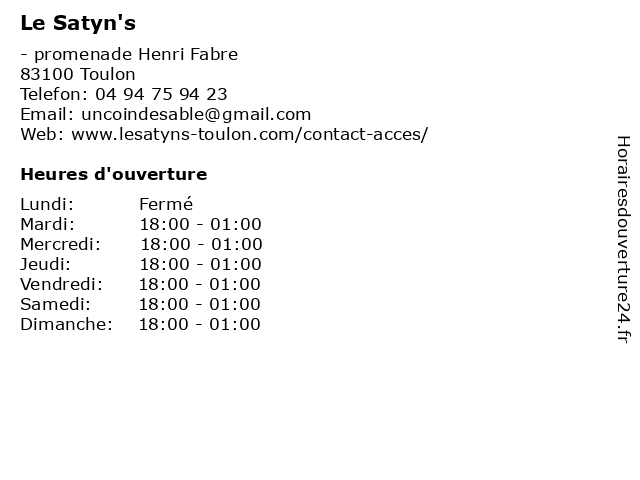 | Samedi | 18:00-01:00 |