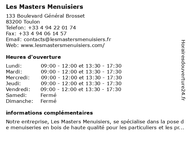 | Lundi | 09:00-12:00 et 13:30-17:30 |