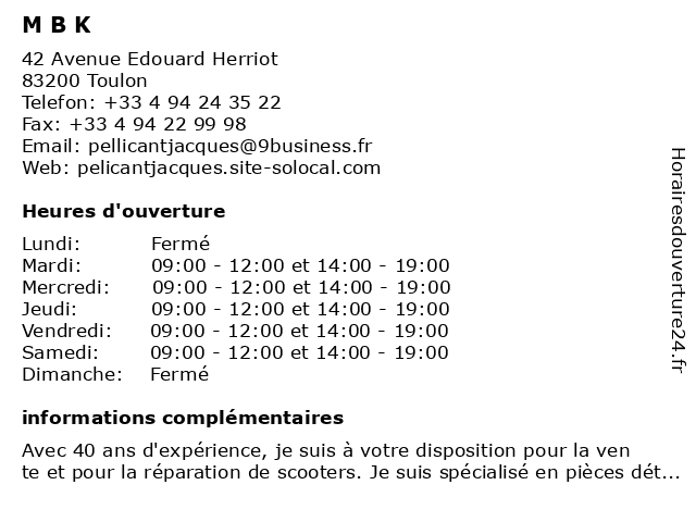 | Samedi | 09:00-12:00 et 14:00-19:00 |