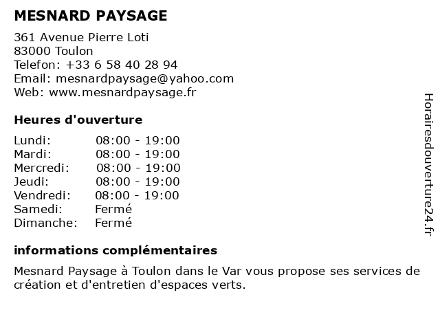 3 Art Déco Paysage (Distance: 4,83 km) 514 Ancien Chemin Revest À Valette, 83160 La Valette-du-Var art, déco, paysage 5 Azur Provence Paysage (Distance: 9,39 km) 2061 Route de Sanary, 83190 Ollioules azur, paysage, provence 6 |