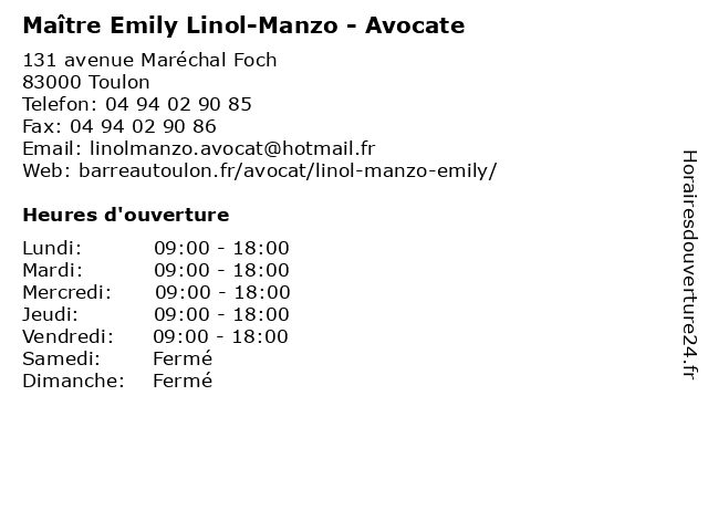 1 Sophie Manzo - Naturopathe (Distance: 7,73 km) 54 Traverse de Reynier, 83140 Six-Fours-les-Plages docteur, manzo, naturopathe, sante, soins, sophie 2 Emily Alarcon - Wedding Designer (Distance: 14,51 km) 327 avenue Dei Reganeu, 83150 Bandol alarcon, d'événements, designer, emily, entrepreneur, fleuriste, planificateur, wedding 3 Dr Emily Rival - Orthodontiste (Distance: 41,33 km) 14 Rue de Siam, 13011 Marseille chirurgien, consultation, dentiste, docteur, dr, emily, med, orthodontiste, rival, secrétariat 4 Maître Emily Barthelemy - Avocate (Distance: 54,12 km) 12 rue Pascal Xavier Coste, 13016 Marseille avocate, avocats, barthelemy, civils, droits, emily, juridiques, maître 5 Maître Mélanie Lauer - Avocate (Distance: 0,00 km) 131 avenue Maréchal Foch, 83000 Toulon avocate, avocats, civils, droits, juridiques, lauer, maître, mélanie 6 Maître Evelyne Guillot - Avocate (Distance: 0,00 km) 131 avenue Maréchal Foch, 83000 Toulon avocate, avocats, civils, droits, evelyne, guillot, juridiques, maître |