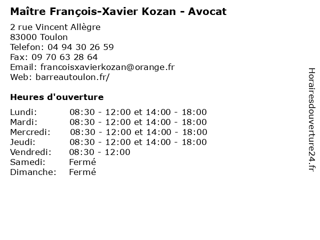 | Lundi | 08:30-12:00 et 14:00-18:00 |
