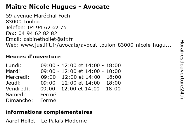 Lundi | 09:00-12:00 et 14:00-18:00 |