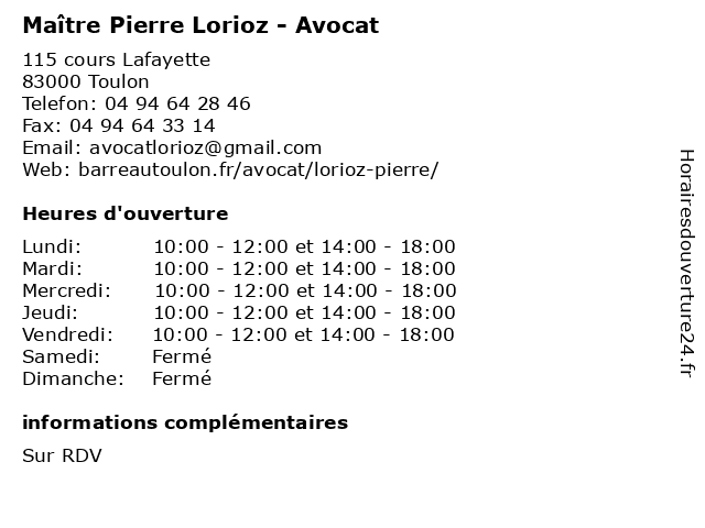 | Lundi | 10:00-12:00 et 14:00-18:00 |