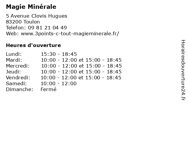 | Mardi | 10:00-12:00 et 15:00-18:45 |