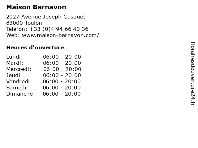 | Lundi | 06:00-20:00 |