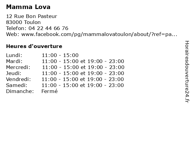 | Mardi | 11:00-15:00 et 19:00-23:00 |