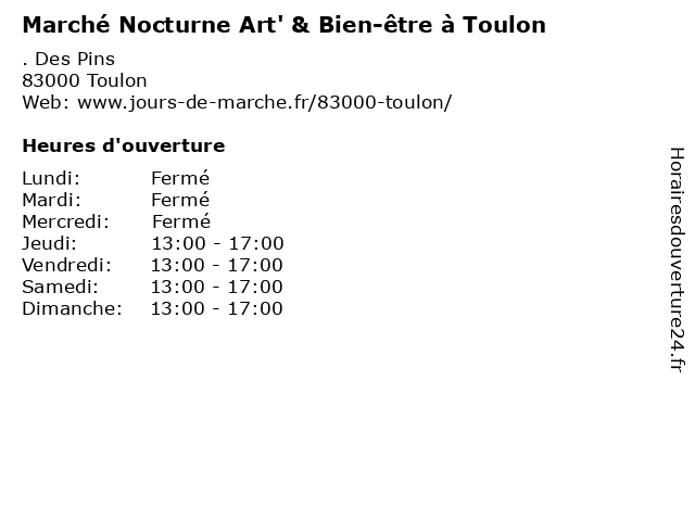 1 Marché Nocturne Art' & Bien-être à Toulon (Distance: 1,81 km) . Plages du Mourillon, 83000 Toulon art', bien, frutas, hortalizas, marché, mercado, nocturne, toulon, verduras, être 2 Marché des Producteurs de pays à Toulon (Distance: 0,07 km) . Paul Lendrin, 83000 Toulon de, des, frutas, hortalizas, marché, mercado, pays, producteurs, toulon, verduras 3 Marché Forain à Toulon (Distance: 0,16 km) . Rue de Lorgues, 83000 Toulon forain, frutas, hortalizas, marché, mercado, toulon, verduras 4 Marché à Toulon (Distance: 0,16 km) . Cours Lafayette, 83000 Toulon frutas, hortalizas, marché, mercado, toulon, verduras 5 Marché Forain à Toulon (Distance: 0,16 km) . Cours Lafayette, 83000 Toulon forain, frutas, hortalizas, marché, mercado, toulon, verduras 6 |