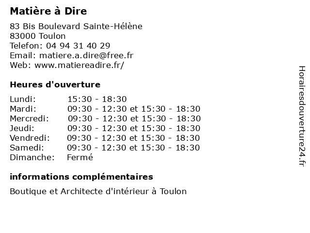 | Samedi | 09:30-12:30 et 15:30-18:30 |