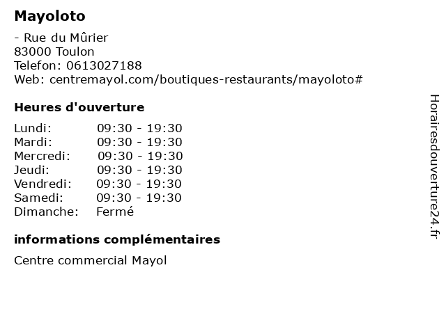 | Lundi | 09:30-19:30 |