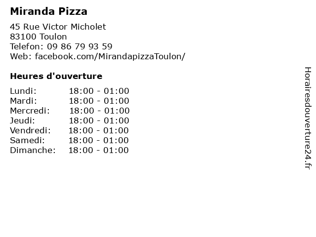 | Lundi | 18:00-01:00 |