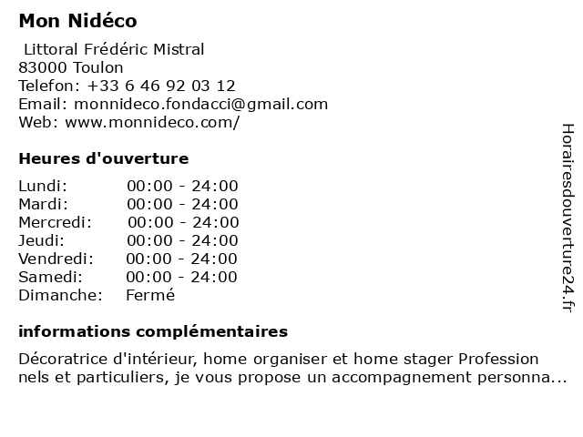 1 Mon Masseur Bien-être (Distance: 0,51 km) 7 rue Castillon, 83000 Toulon bien, bien-être, massages, masseur, mon, professionnels, service, toulon, être 2 Mon épicerie (Distance: 1,47 km) 11 Avenue François Cuzin, 83000 Toulon boutique d'alimentation toulon, mon, superette toulon, épicerie 3 Mon Caprice by Lozana (Distance: 1,59 km) 72 place de la Cathédrale, 83000 Toulon accessoires, boutique, by, caprice, habillements, lozana, mode, mon, vêtements 4 Mon Coiffeur by Franck (Distance: 1,90 km) 9 place Trois Dauphins, 83000 Toulon beauté, by, coiffeur, coiffure, coloration, coupe, franck, mon 5 Dans mon jardin (Distance: 4,34 km) 261 Chemin de Forgentier, 83200 Toulon dans, florist, flowers, jardin, mon, shop 6 Mon Barbier (Distance: 5,61 km) 8 Avenue Marx Dormoy, 83130 La Garde barbier, coiffure, coupe, homme, mon |