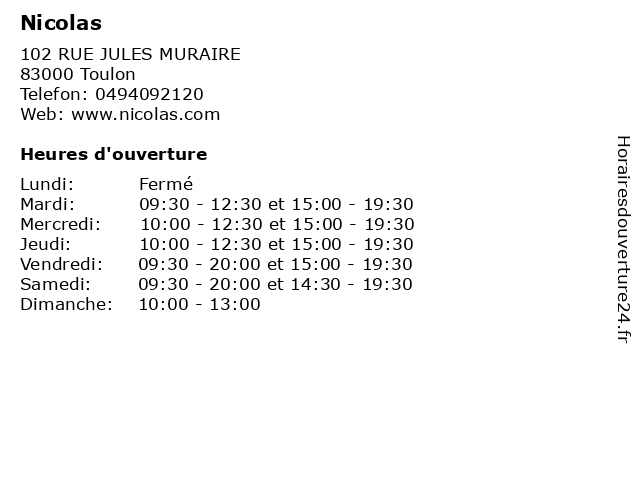 1 Nicolas (Distance: 4,95 km) - Grand Var, 83160 La Valette du var champagnes, hyper-supermarchés, nectars, nicolas, vente au détail de vin, vin 2 Maître Nicolas Reynier - Avocat (Distance: 0,19 km) 19 rue Picot, 83000 Toulon avocat, avocats, civils, droits, juridiques, maître, nicolas, reynier 3 Gevaudan Nicolas (Distance: 0,80 km) 21 Av l Infanterie De Marine, 83000 Toulon gevaudan, nicolas, restaurants 4 Touzet Nicolas (Distance: 1,26 km) Allee De l Armee d Afrique, 83000 Toulon nicolas, restaurants, touzet 6 Nicolas Teboul - Pédicure-podologue (Distance: 2,91 km) 51 Boulevard Delescluze, 83200 Toulon consultation, docteur, med, médecin, médecine, nicolas, podologue, pédicure, teboul, traitement |