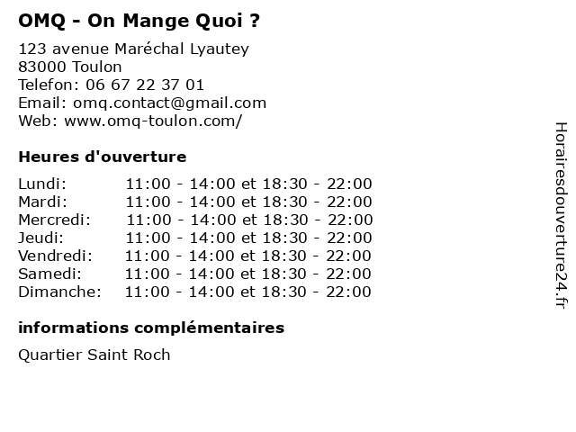 | Dimanche | 11:00-14:00 et 18:30-22:00 |