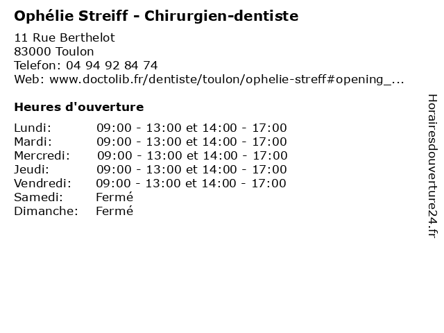 | Lundi | 09:00-13:00 et 14:00-17:00 |