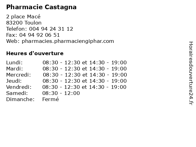 | Lundi | 08:30-12:30 et 14:30-19:00 |