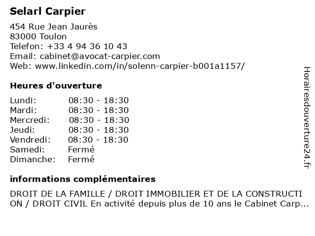 | Lundi | 08:30-18:30 |