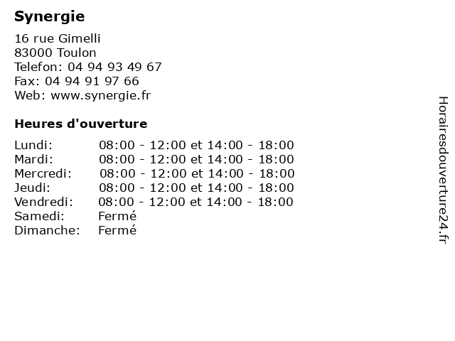2 Laboratoire de Biologie Médicale Synergie (Distance: 1,20 km) 849 Rue Antoine Groignard, 83200 Toulon analyse, biologie, centre, de, laboratoire, medical, médicale, synergie 3 Laboratoire de Biologie Médicale Synergie (Distance: 2,17 km) 182 Avenue Clovis Hugues, 83200 Toulon analyse, biologie, centre, de, laboratoire, medical, médicale, synergie 4 Laboratoire de Biologie Médicale Synergie (Distance: 3,49 km) 554 Avenue Meuniers, 83200 Toulon analyse, biologie, centre, de, laboratoire, medical, médicale, synergie 5 Laboratoire de Biologie Médicale Synergie (Distance: 4,52 km) 47 Rue Camille Pelletan, 83500 La Seyne-sur-Mer analyse, biologie, centre, de, laboratoire, medical, médicale, synergie 6 Laboratoire de Biologie Médicale Synergie (Distance: 5,83 km) 1387 Avenue des Anciens Combattants d’Indochine, 83500 La Seyne-sur-Mer analyse, biologie, centre, de, laboratoire, medical, médicale, synergie |