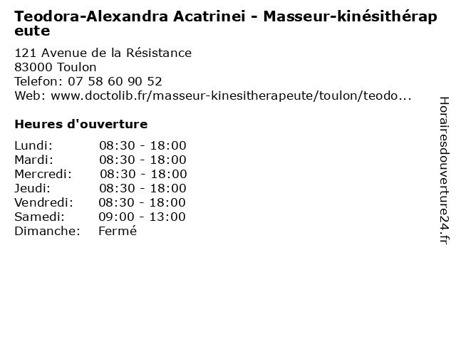 Termes de recherche pour Teodora-Alexandra Acatrinei - Masseur-kinésithérapeute:alexandra, docteur, kiné, masseur, kinésithérapeute, teodora, acatrinei |