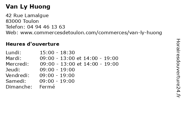 | Dimanche | Fermé |