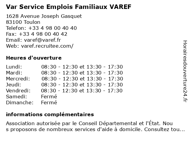 Termes de recherche pour Var Service Emplois Familiaux VAREF:service, var, emplois, familiaux, varef |
