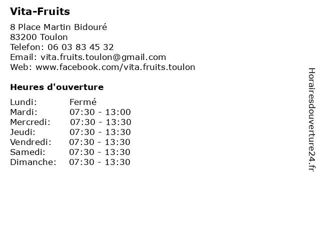 Termes de recherche pour Vita-Fruits:vita, buffet, fruits, légumes, primeur |