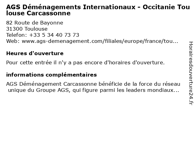 | Appeler AGS Déménagements Internationaux - Occitanie Toulouse Carcassonne | |