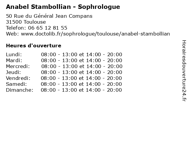 | Dimanche | 08:00-13:00 et 14:00-20:00 |