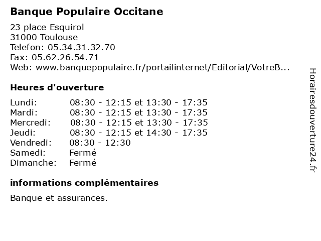 1 Banque Populaire Occitane (Distance: 0,56 km) 39 rue du Languedoc, 31000 Toulouse assurances occitanie, banque, occitane, populaire 2 Banque Populaire Occitane (Distance: 0,56 km) 47 rue d'Alsace Lorraine, 31001 Toulouse assurances occitanie, banque, occitane, populaire 3 Banque Populaire Occitane (Distance: 0,61 km) 81 boulevard Carnot, 31000 Toulouse assurances occitanie, banque, occitane, populaire 4 Banque Populaire Occitane (Distance: 0,75 km) 18 place Dupuy, 31000 Toulouse assurances occitanie, banque, occitane, populaire 5 Banque Populaire Occitane (Distance: 0,97 km) 1 place Jeanne d'Arc, 31000 Toulouse assurances occitanie, banque, occitane, populaire 6 Banque Populaire Occitane (Distance: 1,17 km) 48-50 allée Charles de Fitte, 31300 Toulouse assurances occitanie, banque, occitane, populaire |