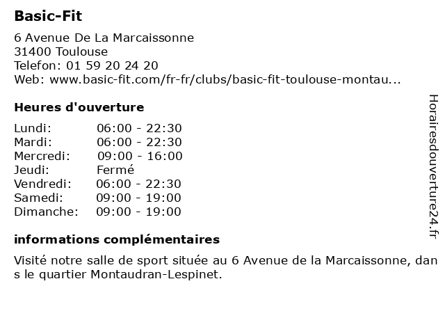 6 Basic-Fit (Distance: 7,73 km)5 Rue Joachim Du Bellay, 31100 Toulouse basic, fit |