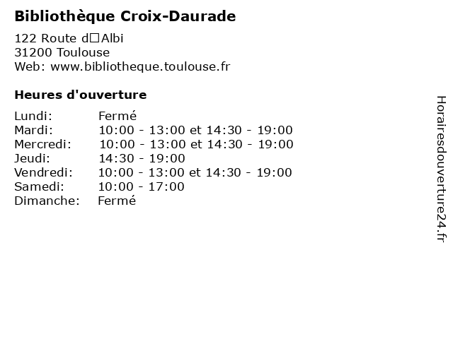 Termes de recherche pour Bibliothèque Croix-Daurade:croix, services, bibliotheque, livre, daurade, mediatheque  |