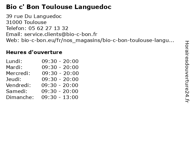 1 Carrefour Bio (Distance: 0,00 km) 39 Rue du Languedoc, 31000 Toulouse alimentation, bio, carrefour, magasin discount, market, supermarché 2 Bohēbon (Distance: 0,13 km) 52 rue des Filatiers, 31000 Toulouse bohēbon, boissons, bowls, menus, poke, restaurant, salades 3 L' Atelier du Languedoc (Distance: 0,34 km) 3 Rue du Languedoc, 31000 Toulouse atelier, du, l', languedoc 4 Avril Cosmétique Bio (Distance: 0,35 km) 6 Rue d'Alsace Lorraine, 31000 Toulouse avril, bio, cosmétique, magasin, producteur, produit 5 Marché bio de Pechabou à Toulouse (Distance: 0,52 km) . Centre Ville, 31000 Toulouse bio, de, frutas, hortalizas, marché, mercado, pechabou, toulouse, verduras 6 Bio c' Bon (Distance: 0,54 km) 17 rue Paul Vidal, 31000 Toulouse bio, bon, c', magasins, produits, services |