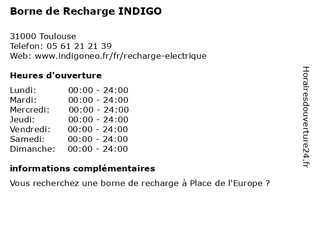 1 Borne de Recharge INDIGO (Distance: 0,67 km) Place Arnaud Bernard, 31000 Toulouse borne, de, indigo, recharge 2 Borne de Recharge INDIGO (Distance: 1,19 km) Place Du Capitole, 31000 Toulouse borne, de, indigo, recharge 3 Borne de Recharge INDIGO (Distance: 1,34 km) 11 Place Jean Diebold, 31300 Toulouse borne, de, indigo, recharge 4 Borne de Recharge INDIGO (Distance: 1,75 km) Place Des Carmes, 31000 Toulouse borne, de, indigo, recharge 5 Borne de Recharge INDIGO (Distance: 1,75 km) 51 bis Rue Du Rempart Saint-etienne, 31000 Toulouse borne, de, indigo, recharge 6 Borne de Recharge INDIGO (Distance: 1,84 km) 9 Rue Riguepels, 31000 Toulouse borne, de, indigo, recharge  |