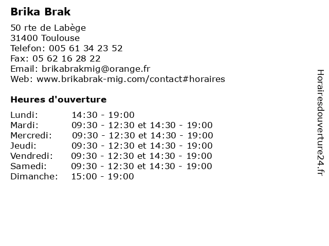 | Mardi | 09:30-12:30 et 14:30-19:00 |