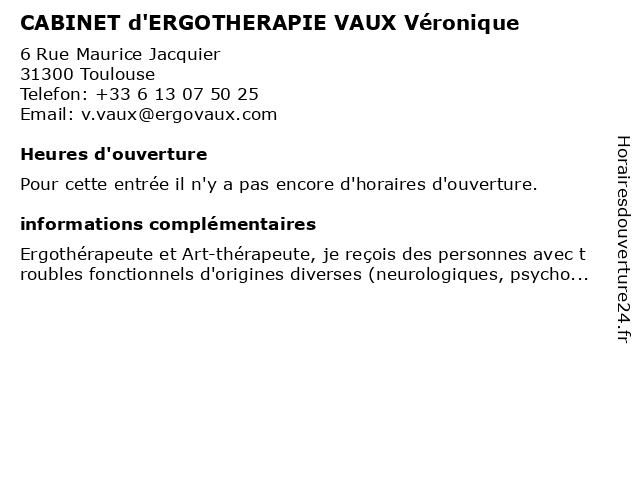 | Appeler CABINET d'ERGOTHERAPIE VAUX Véronique | |