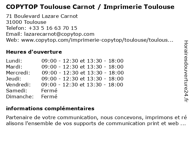| Lundi | 09:00-12:30 et 13:30-18:00 |