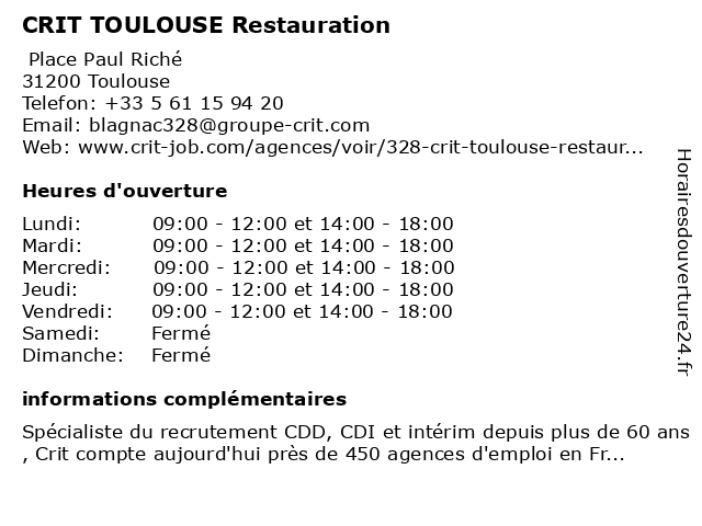 Termes de recherche pour CRIT TOULOUSE Restauration:restauration, toulouse, crit |