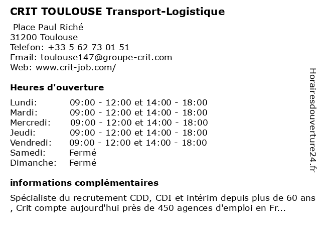 Termes de recherche pour CRIT TOULOUSE Transport-Logistique:toulouse, transport, logistique, crit |