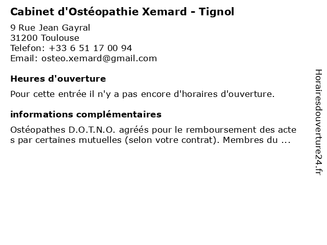 | Appeler Cabinet d'Ostéopathie Xemard - Tignol | |