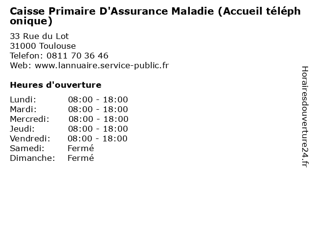 1 Caisse Primaire D'Assurance Maladie (Accueil téléphonique) (Distance: 1,24 km) . Place Commerciale, 31400 Toulouse accueil, administration, assoc, caisse, d'assurance, maladie, primaire, services, services publics, téléphonique 2 Caisse Primaire D'Assurance Maladie (Accueil téléphonique) (Distance: 2,15 km) . Place Roguet, 31300 Toulouse accueil, administration, assoc, caisse, d'assurance, maladie, primaire, services, services publics, téléphonique 3 Caisse Primaire D'Assurance Maladie (Accueil téléphonique) (Distance: 2,72 km) . Place Micouleau, 31200 Toulouse accueil, administration, assoc, caisse, d'assurance, maladie, primaire, services, services publics, téléphonique 4 Caisse Primaire D'Assurance Maladie (Accueil téléphonique) (Distance: 7,35 km) 61 Chemin Verdale, 31240 Saint-Jean accueil, administration, assoc, caisse, d'assurance, maladie, primaire, services, services publics, téléphonique 5 Caisse Primaire D'Assurance Maladie (Accueil téléphonique) (Distance: 9,01 km) 1 Place d'Occitanie, 31770 Colomiers accueil, administration, assoc, caisse, d'assurance, maladie, primaire, services, services publics, téléphonique 6 Caisse Primaire D'Assurance Maladie (Accueil téléphonique) (Distance: 10,71 km) 27 Allée Jean Jaurès, 31120 Portet-sur-Garonne accueil, administration, assoc, caisse, d'assurance, maladie, primaire, services, services publics, téléphonique |