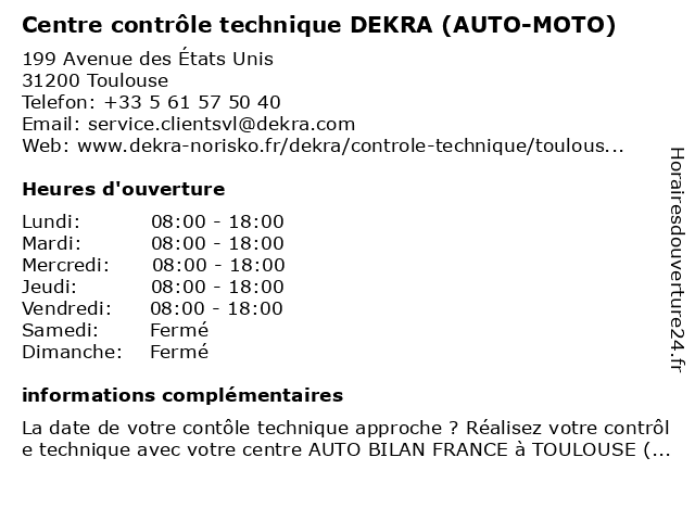 Description de l'entreprise :Préparer votre contrôle techniquePour préparer votre contrôle technique dans notre centre DEKRA de Toulouse, vous pouvez vérifier en amont différents points comme les pneumatiques, la visibilité, le niveau d'huile ou encore l'habitacle. Pour tout savoir, consultez notre vidéo. Voir l'offre |