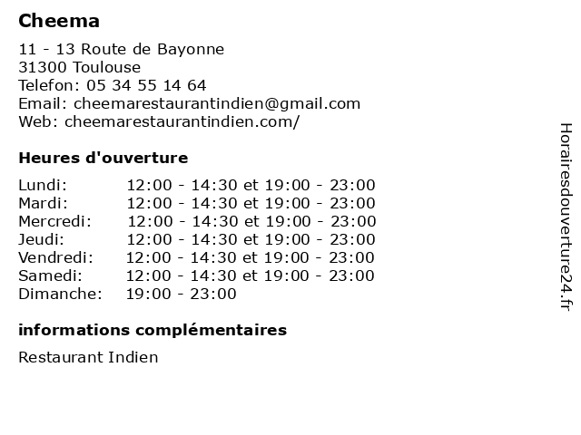 Termes de recherche pour Cheema:restaurant, alimentation, brasserie, terrasse, indien, parking, cheema |