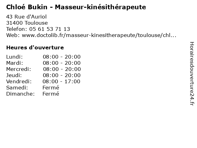 1 Dr Chloé Bonnet - Médecin généraliste (Distance: 0,56 km) 1 Rue Notre Dame, 31400 Toulouse bonnet, chloé, docteur, dr, generaliste, généraliste, medical, médecin, soin 2 Dr Chloé Sanchez-Bardy - Pneumologue (Distance: 0,75 km) 33 Rue des bûchers, 31400 Toulouse allergie, allergologie, bardy, chloé, dr, pneumologie, pneumologue, sanchez 3 Chloé Goutalier - Chiropracteur (Distance: 0,76 km) 11 Place Lafourcade, 31400 Toulouse chiro, chiropracteur, chloé, goutalier, sante, soins 4 Maître Chloé Schneider - Avocate (Distance: 1,02 km) 22 rue de la Dalbade, 31000 Toulouse avocat, avocate, chloé, chloé schneider, droit, juridictionnelle, maître, négociation, schneider 5 Chloé Guegan - Masseur-kinésithérapeute (Distance: 2,30 km) 22 Rue Matabiau, 31000 Toulouse bien-être, chloé, en, forme, guegan, kinésithérapeute, kinésithérapie, masseur, remise, rééducation 6 Chloé Beranger - Ostéopathe - secretariat (Distance: 2,71 km) 6 Route d'Espagne,, 31100 Toulouse beranger, chloé, médecin, médecine, médical, ostéopathe, pharmaceutique, secretariat, traitement |