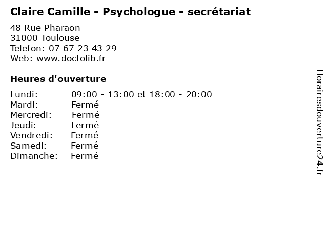Termes de recherche pour Claire Camille - Psychologue - secrétariat:camille, claire, secretariat, médecins, psychologue, thérapies, cabinets |