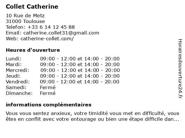 | Lundi | 09:00-12:00 et 14:00-20:00 |