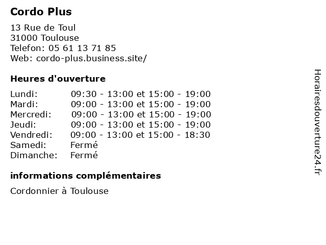 | Mardi | 09:00-13:00 et 15:00-19:00 |