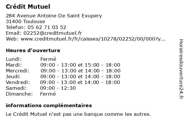 1 Crédit Mutuel (Distance: 2,81 km) 44 Avenue De L Urss, 31400 Toulouse compagnie de téléphone, crédit, mutuel, organisme d'assurance 2 Crédit Mutuel (Distance: 2,85 km) 107 AVENUE CAMILLE PUJOL, 31500 TOULOUSE crédit, l'argent, l'épargne, le crédit, les banques, les prêts, mutuel 3 Crédit Mutuel (Distance: 3,26 km) 284 AVENUE ANTOINE DE SAINT EXUPERY, 31400 TOULOUSE crédit, l'argent, l'épargne, le crédit, les banques, les prêts, mutuel 4 Crédit Mutuel (Distance: 3,32 km) 19 PLACE DOMINIQUE MARTIN DUPUY, 31000 TOULOUSE crédit, l'argent, l'épargne, le crédit, les banques, les prêts, mutuel 5 Crédit Mutuel (Distance: 3,41 km) 2 Rue Georges De Buffon, 31130 Balma compagnie de téléphone, crédit, mutuel, organisme d'assurance 6 Crédit Mutuel (Distance: 3,46 km) 6 Route de Castres, 31130 Quint-Fonsegrives assurances, bancaire, banque, crédit, mutuel, services |