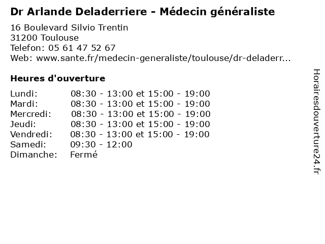 | Lundi | 08:30-13:00 et 15:00-19:00 |